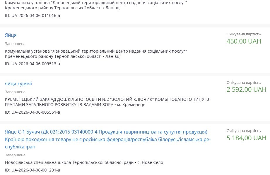 - Служба у справах дітей Великогаївської сільської ради хоче купити 120 яєць за 1151 гривню.