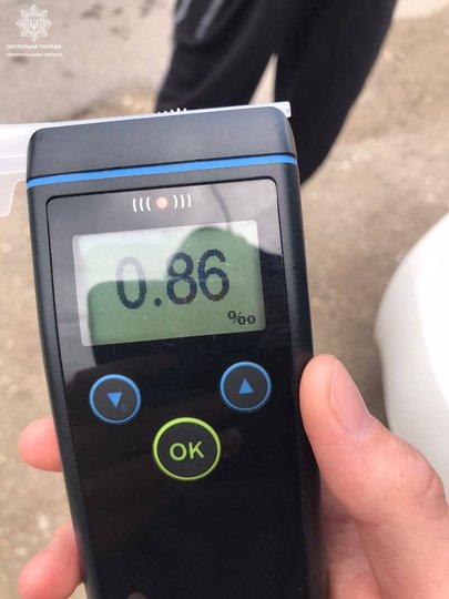 «Результат огляду виявився позитивним, прилад зафіксував 0.86 проміле алкоголю в крові водія, що перевищує допустиму законом норму», – йдеться у повідомленні прес-служби патрульної поліції Тернопільщини. Додамо, що цей показник втричі перевищує допустиму норму.