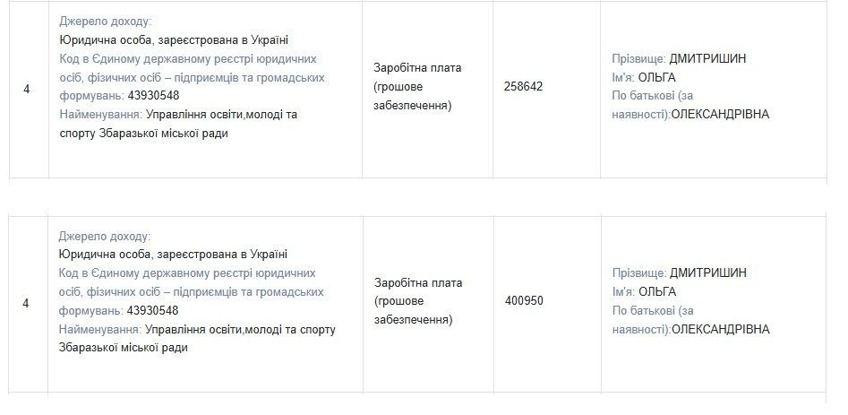 Зокрема, згідно з деклараціями, дружина посадовця міськради отримала у 2024 році понад 258 тисяч гривень заробітної плати, а вже у 2025 році – понад 400 тисяч гривень. Це означає зростання більш ніж на 50 відсотків за рік.