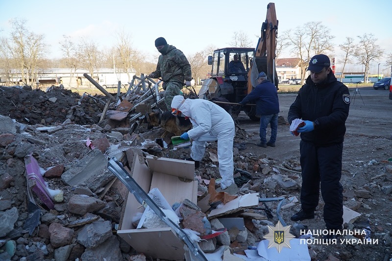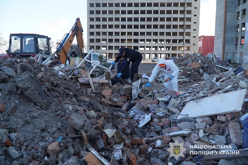 Сотні тонн уламків вивезено на спеціальний майданчик за межами міста. Слідчі, криміналісти та кінологи вручну перебирають кожен шар завалів.